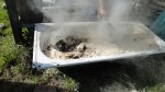 Anschliessend werden die Keramikstücke mit Heu, Blättern oder Holzspänen bedeckt.